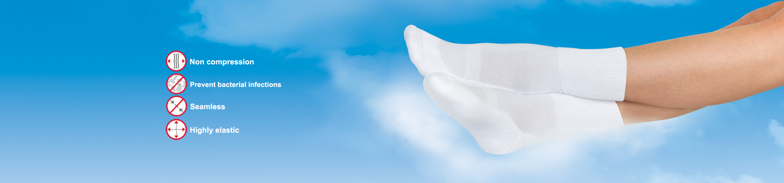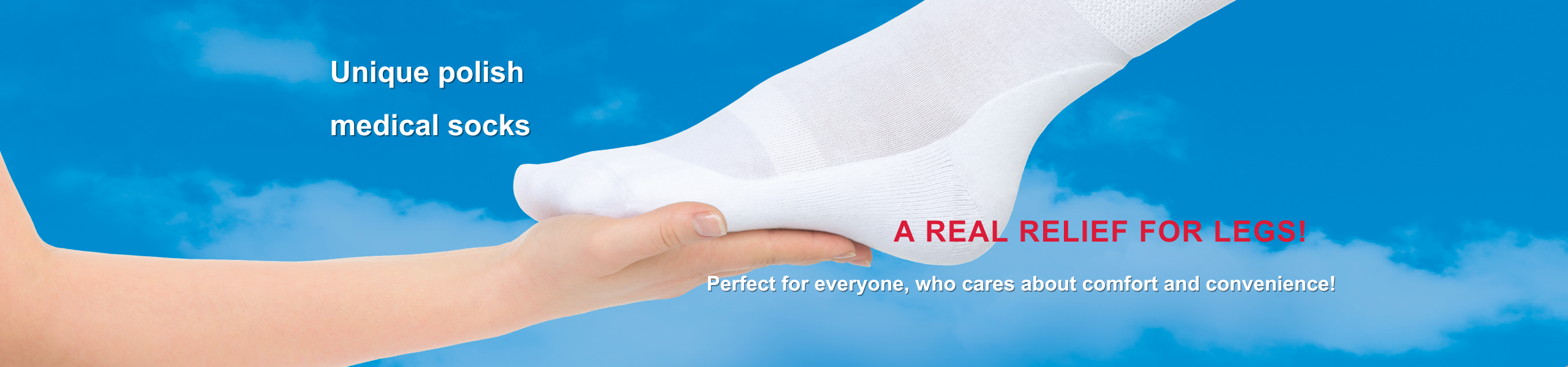 A collection of unique medical socks for people with: diabetes, inflammatory skin, fungi, swelling of legs and circulatory disorders.