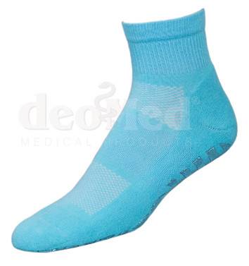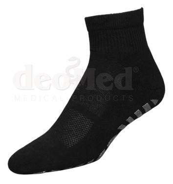 Socks designed to be used without footwear, especially for exercise and gyms. Silicone finish on the sole prevents slipping. Three-layer terry fabric protects sensitive parts of feet. Fine and cool fabric over the foot ensures humidity evaporating and proper ventilation. Toes are seamlessly linked. The elastic band on the mid-foot protects the sock against shifting on the foot even in case of sudden movements. Appropriately shaped knitted material on the heel (Y-shaped), perfectly fits and stabilizes the foot. The socks have antibacterial, antifungal and anti-odour properties, ensuring maximum hygienic advantages.