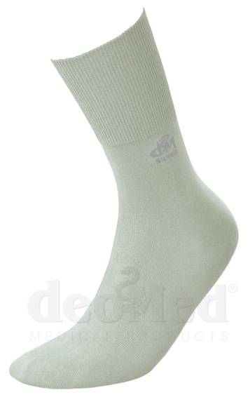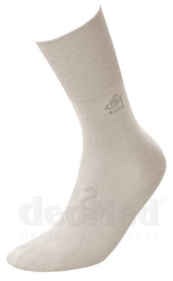 Skarpetki nieuciskające DEOMED Cotton Silver to komfortowe skarpetki zdrowotne wykonane z naturalnej przędzy bawełnianej z dodatkiem jonów srebra. Skarpety ze srebrem Deomed Cotton Silver mogą dzięki temu służyć jako naturalne wsparcie w profilaktyce i leczeniu różnych schorzeń stóp i nóg!